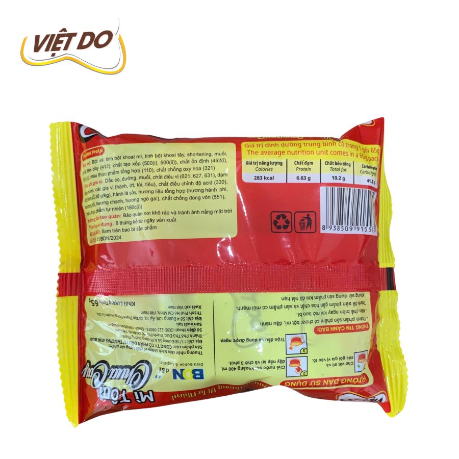 – Mì Tôm Chua Cay Việt Do với sợi mì mềm, dai, được làm từ nguyên liệu chọn lọc, kết hợp cùng hương vị đậm đà và thanh ngọt của nước dùng làm nên hương vị đặc trưng.