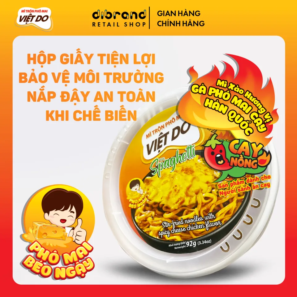 – Mì Trộn Spaghetti phô mai siêu hot thương hiệu VIETDO với gà phô mai béo ngậy kết hợp sốt cà chua với sợi mì dai dai cùng vị cay nồng đem lại cho bạn một khẩu phần ăn hoàn hảo.