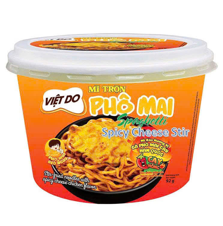 – Mì Trộn Spaghetti phô mai siêu hot thương hiệu VIETDO với gà phô mai béo ngậy kết hợp sốt cà chua với sợi mì dai dai cùng vị cay nồng đem lại cho bạn một khẩu phần ăn hoàn hảo.